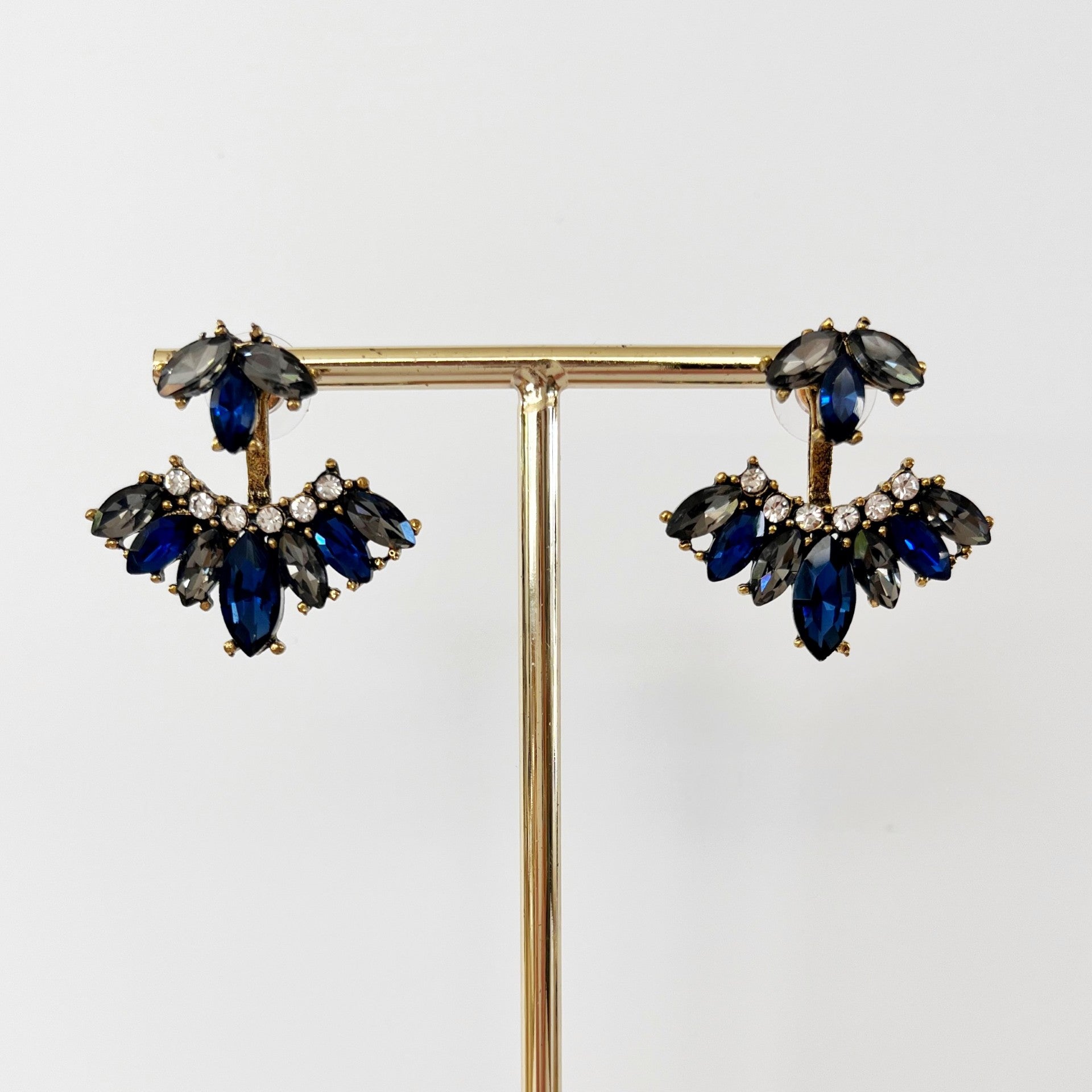 Movie Star & Vintage Inspired - Featuring a stud post with three jewels, and second drop worn behind the ear - fastened with an earring clutch.