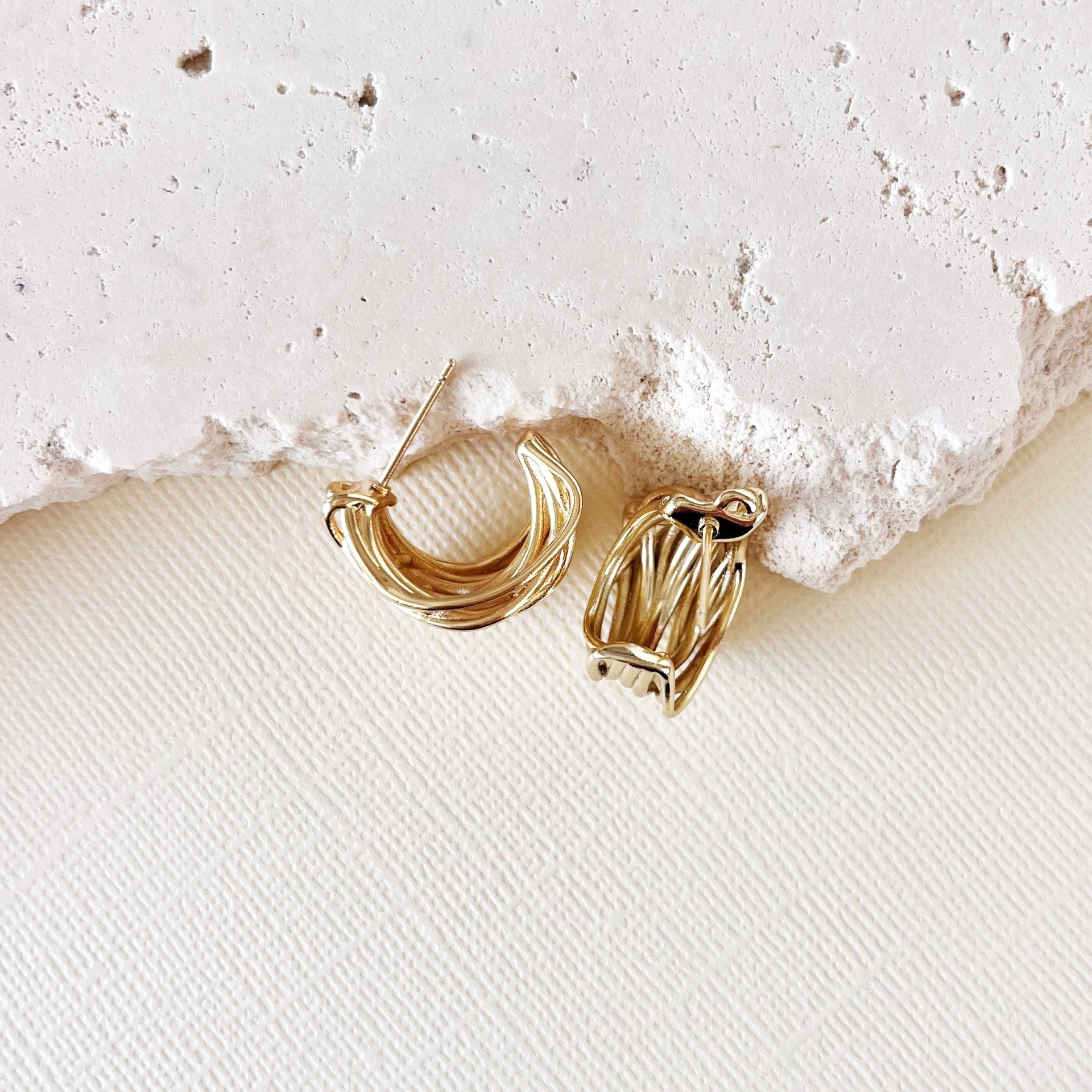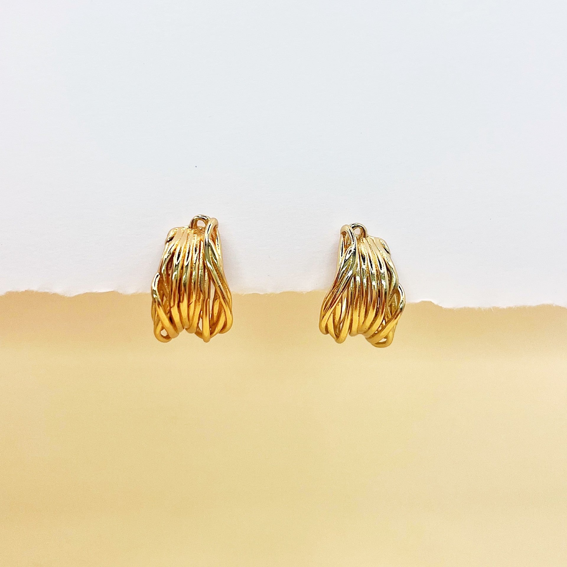 These gorgeous gold earrings have the appearance of intertwined wire creating a stylish on trend look. So versatile.... wear these to the office, ladies lunch or formal event.